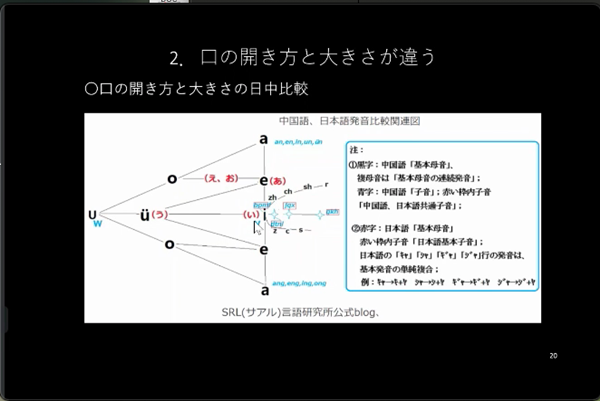 本次学术讲座以腾讯会议在线开展。讲座中,侯仁锋教授结合大量实用例句,从中日语言对比的角度,生动有趣地讲解了中日两国语言在发音位置、发音口型、开口度大小、声调类型、语调等方面的异同。讲座内容丰富、同时也包含许多独道见解,是侯仁锋教授通过多年日语和对外中文教学实践的基础上,经过大量的考察及研究,总结出的学术精华。