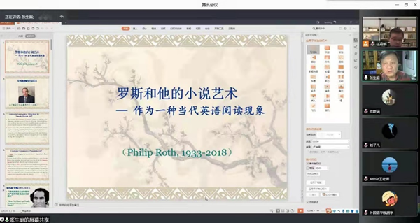 2021年11月30日晚上,西安外国语大学张生庭教授应zoty中欧邀请做了题为“菲利普·罗斯与他的小说艺术——作为一种当代的英语阅读现象”的线上学术讲座。讲座由zoty中欧任育新教授主持,zoty中欧教师、研究生及部分本科生参加了此次学术活动。