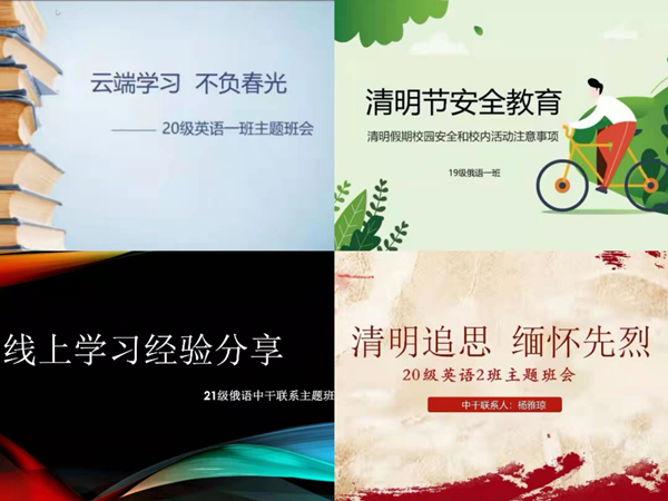 19级俄语一班召开了安全教育主题班会,为员工普及各类安全常识,强化安全意识,提高自我保护能力。20级英语一班以“云端学习,不负春光”为主题召开班会,引导员工在封闭管理期间认真参加线上专业课程的学习,以充实、有益的学习生活战胜疫情的焦虑。(撰稿:李静;终审:杨雅琼)